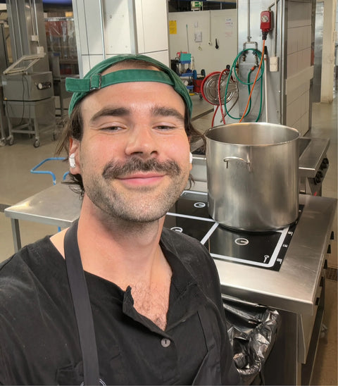Mein Name ist Adrian. Nach meinem Architekturstudium in Wien habe ich in London eine Ausbildung zum Koch und Patissier gemacht. Dort habe ich auf Bauernmärkten regelmäßig die übriggebliebenen Knochen der Metzger mitgenommen und meine eigene Brühe gekocht. Ich war fasziniert, weil Brühe so vielseitig ist und gleichzeitig enttäuscht von den Supermarktprodukten, die meist von schlechter Qualität und voller Zusatzstoffe waren.