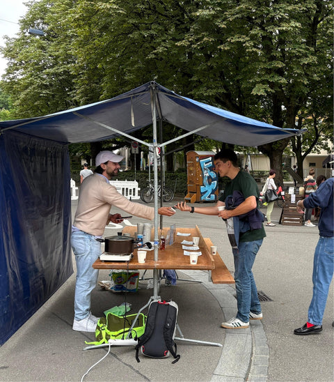 Als ich später nach Zürich zog und in einem Architekturbüro arbeitete, fiel mir auf: Es gibt hier kaum hochwertige Brühen, höchstens in Pulverform. So entstand die Idee, meine eigene Brühe zu entwickeln. Ich kündigte meinen Job, begann selbst Brühe zu kochen und verkaufte sie auf Märkten.